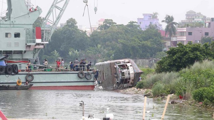 According to Sadarghat River Police SI Hasan Maruf, the waterbus was pulled out around 8am, 12 hours after it sank. Two of the deceased were identified among three. They are Md Alif, 14, son of Md Babu Miah of Keraniganj; and Md Fahim, 20, son of Sabuj of Dohar.