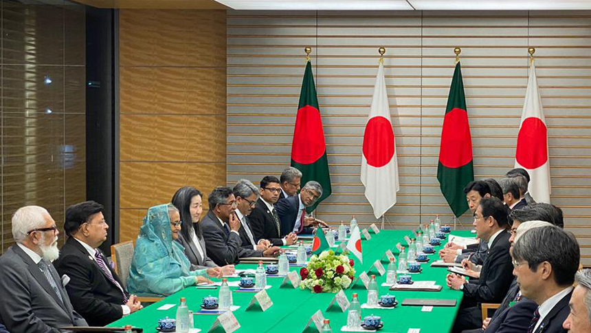 Earlier, the Bangladesh Premier arrived in the Haneda International Airport in Tokyo around 4:45pm local time yesterday (April 25) and Japan rolled out the red carpet to welcome Sheikh Hasina and also gave her the static guard of honour Sheikh Hasina is visiting Japan after three years since she last visited in 2019, before the Covid-19 pandemic broke out. A special flight of Biman Bangladesh Airlines left Hazrat Shahjalal International Airport, Dhaka at 7:56am (BD time) on April 25 with Prime Minister Sheikh Hasina commencing her 15-day official tour to Japan, the USA and the UK.