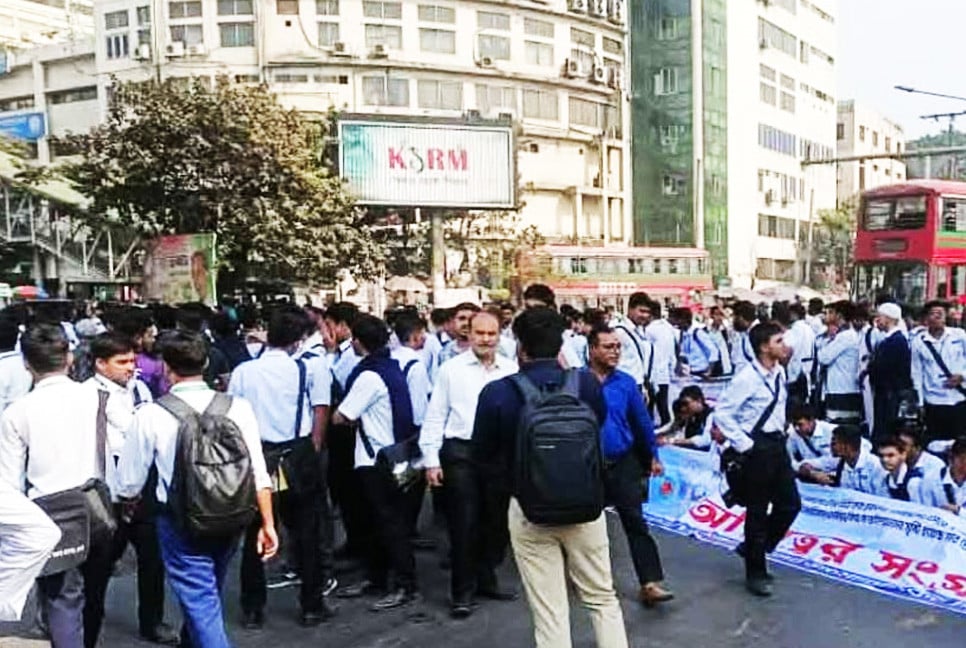 Online Desk : Students of five public colleges in Dhaka blocked the Shahbagh intersection on Sunday, reports the Daily Sun. The students made this move alleging that a draft ordinance for a new “Dhaka Central University” based on a schooling model has created uncertainty over the future of Higher Secondary (HSC) education. The blockade began around 11:30 am after students marched from their respective campuses and occupied the intersection, bringing traffic to a standstill.