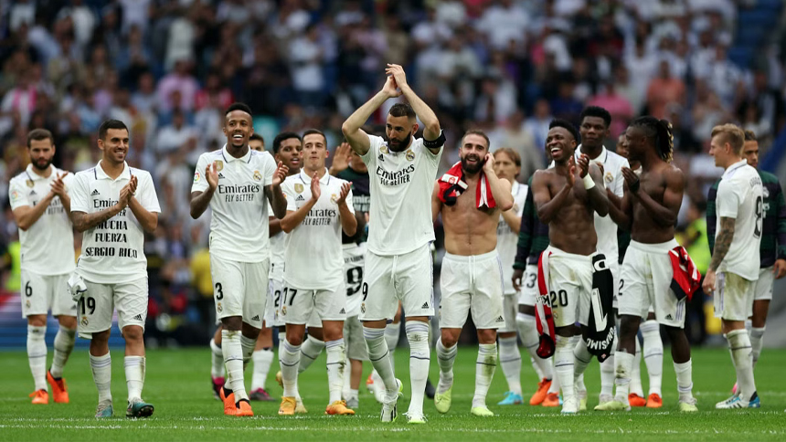 Online Desk: Real Madrid’s departing great Karim Benzema struck from the penalty spot to earn his side a 1-1 draw against Athletic Bilbao on Sunday in La Liga as he said goodbye to fans at the Santiago Bernabeu. Elsewhere Real Valladolid were relegated after a 0-0 draw with Getafe, while five other sides near the bottom were able to breathe a sigh of relief after a gripping conclusion to the season, AFP reports.