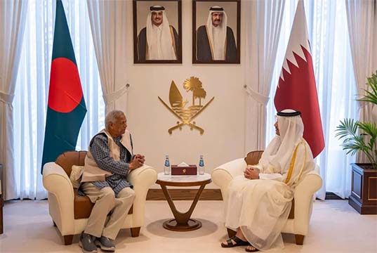 The two leaders also discussed the Gaza situation. Prof Yunus expressed his regret that much of the world is still silent over the plight of the Gazans. The Prime Minister of Qatar expressed his appreciation of the position of Bangladesh on this issue. The Bangladesh Chief Adviser also thanked Al Jazeera, which he visited yesterday, for covering the Gaza crisis despite enormous challenges. Prof Yunus sought Qatari support for Bangladesh’s female sports athletes, including providing training and building facilities for them. He invited the Qatari Prime Minister to visit Bangladesh at a convenient time – a request gladly accepted by Sheikh Mohammed. Foreign Adviser Touhid Hossain, Energy Adviser Fouzul Kabir Khan, National Security Adviser Dr. Khalilur Rahman and SDG Affairs Coordinator Lamiya Morshed, among others, attended the meeting.