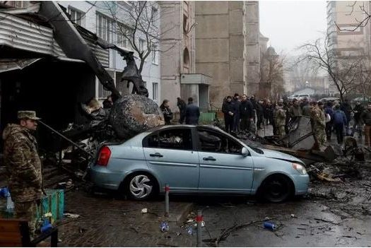 The Daily Morning Voice Online Desk: Eighteen people including Ukraine’s interior minister, other senior ministry officials and three children were killed on Wednesday morning when a helicopter crashed near a nursery outside Kyiv, Ukrainian officials said, reports Reuters. The regional governor said 29 people were also hurt, including 15 children, when the helicopter came down in a residential area in Brovary, on the capital’s northeastern outskirts. Several dead bodies draped in foil blankets lay in a courtyard near the damaged nursery. Emergency workers were at the scene. Debris was scattered over a playground.